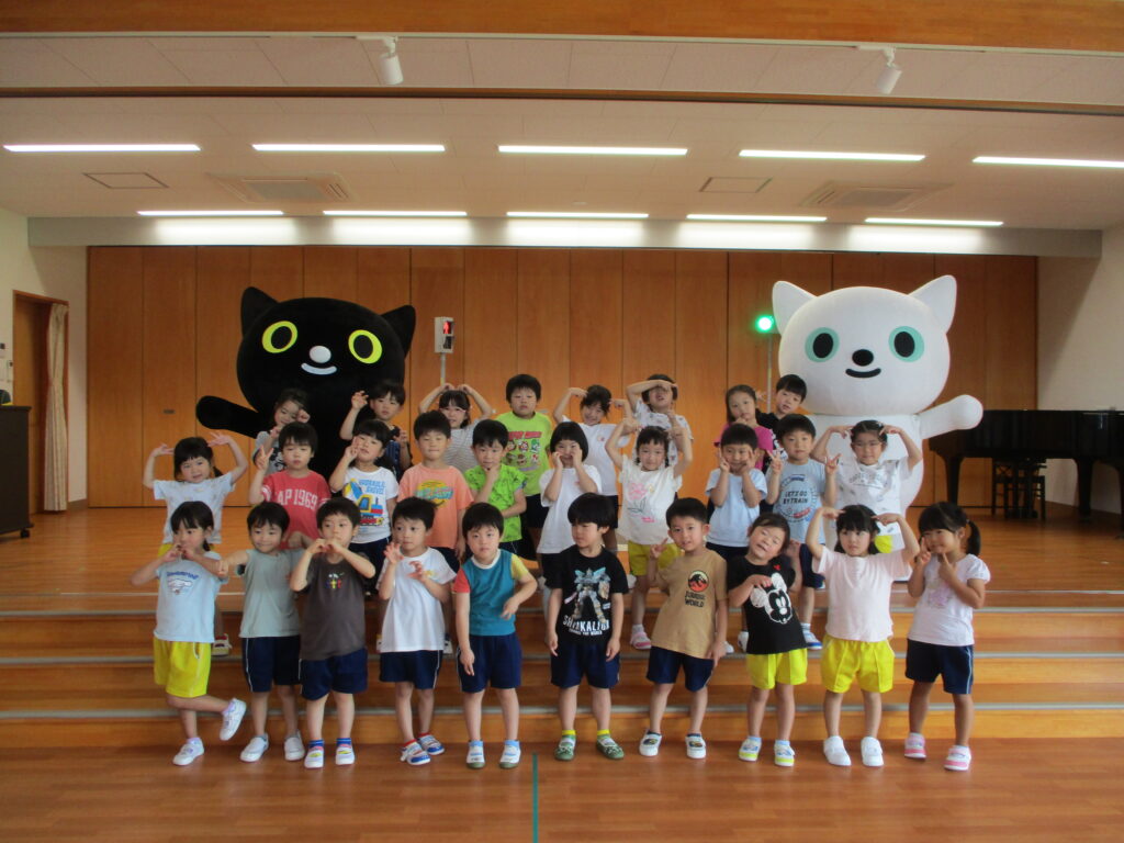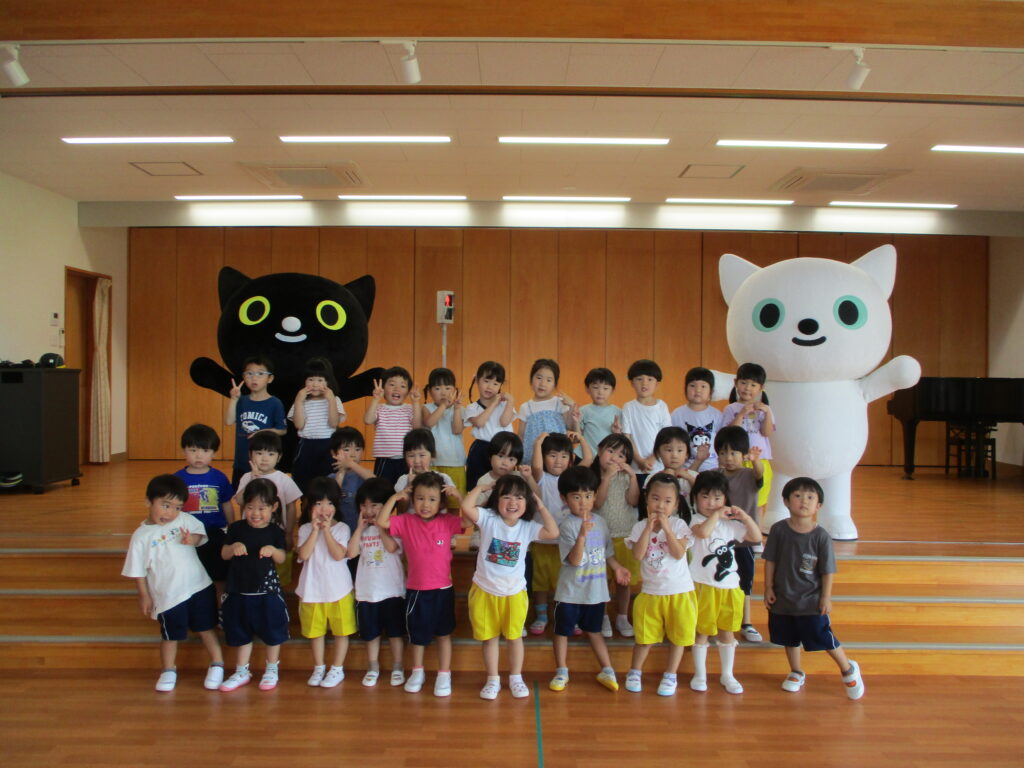 横断歩道を渡ったクラスからくろちゃんとしろちゃんと一緒に写真を撮りました☆