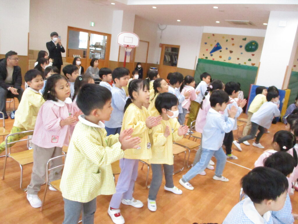 年長さんはみんなで考えたかわいい振り付けで「おもちゃのチャチャチャ」を